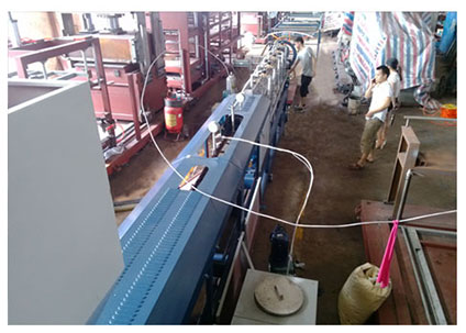 1、產(chǎn)量: 300Kg/h 2、片材厚度: 1.5-10mm 3、片材寬度: 1000—1500mm 4、產(chǎn)品密度: 17—40Kg/m³ 5、運行功率: 140Kw 6、耗水量: 5T/h 7、占地面積: 27x6M 8、設(shè)備重量: 14T |